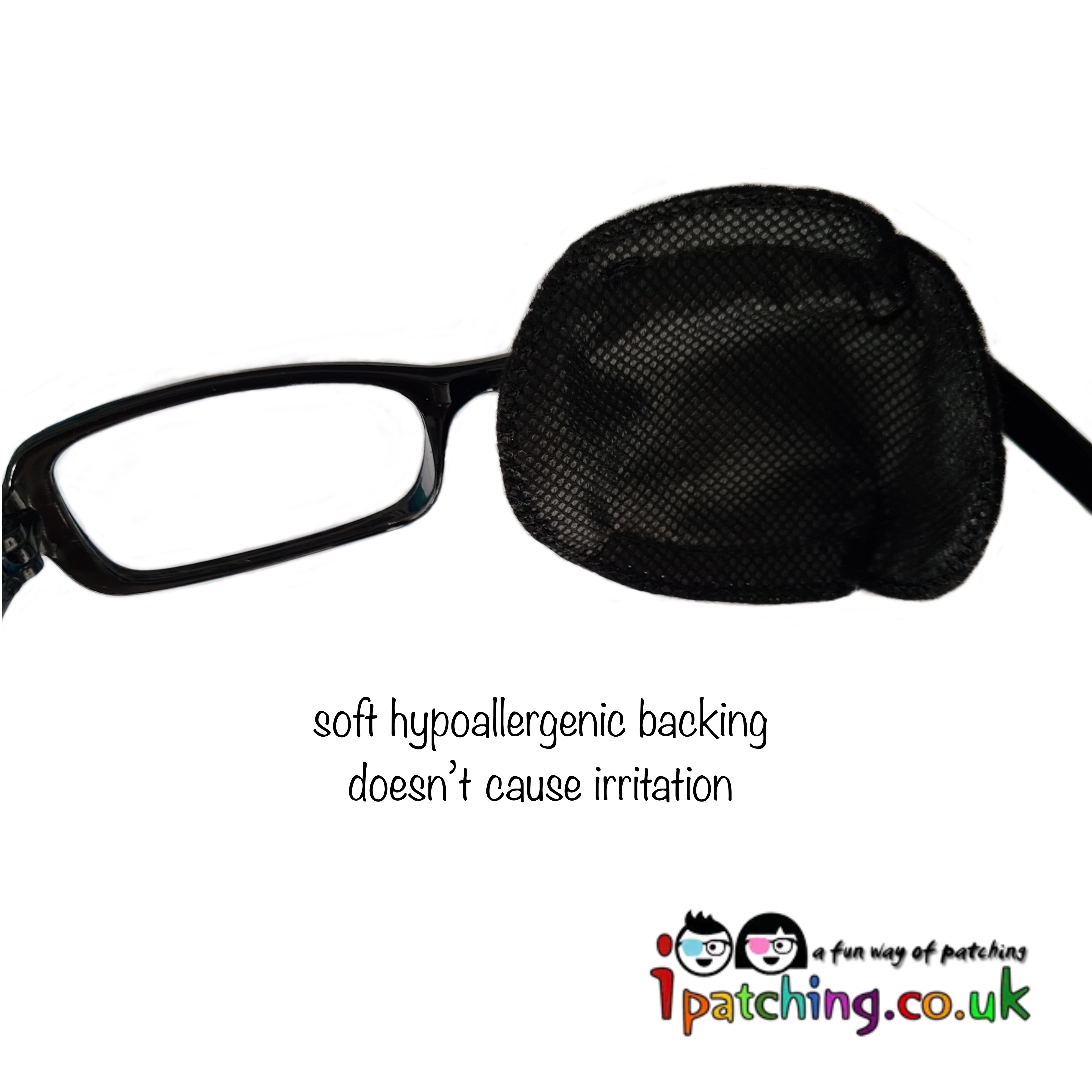 - These patches are available in two sizes as standard – Kids size – to fit glasses with lens of up to 40 mm high, and Adults size – to fit glasses with lens of up to 50mm high – lens measured from top to bottom including the frame. If your glasses are smaller or bigger, please send us a note with your order, we will be happy to make a patch as per your exact measurements.