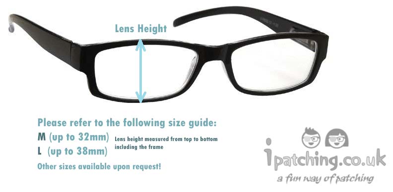 - All patches are available in two sizes as standard – M (up to 32mm) to fit glasses with lens of up to 32mm high, and L (up to 38mm) to fit glasses with lens of up to 38mm high – lens measured from top to bottom including the frame. Please see the size guide for more information. If your glasses are smaller or bigger, please select ‘Custom Size’ from the drop down menu and send me a note with your order, we will be happy to make a patch as per your exact measurements.